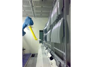靜電除塵,可去除工件表面由于靜電吸附的毛刺,保證工件在噴涂前的潔凈度,有利于提高噴涂良品率。主要設(shè)備可以用靜電除塵槍、靜電除塵離子風(fēng)機(jī)、靜電除塵離子除塵風(fēng)棒等。