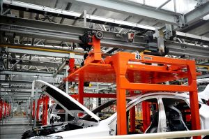 汽車保險(xiǎn)杠在涂裝設(shè)備線中的噴漆流程:工件上線→預(yù)脫脂→脫脂→水洗1→水洗2→純水洗→吹水→水分烘干→冷卻→擦凈、打磨→火焰處理→靜電除塵→噴底漆→流平→噴面漆→流平→噴罩光漆→流平→固化烘干→檢查、拋光、檢驗(yàn)→工件下線。具體詳情如下。